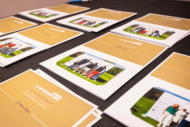 En guide de souvenir, les organisateurs ont offert à chaque golfeur avec une photo de son équipe, que j'ai imprimé sur place et en direct, dans un cartonnage personnalisé pour l'occasion.